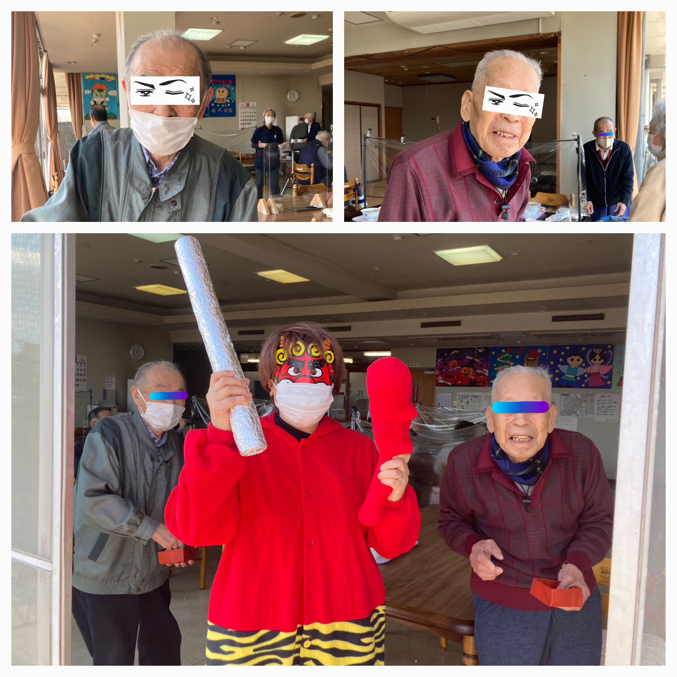 今年の年男M・MさんとN・Hさんに豆をまいてもらいました。