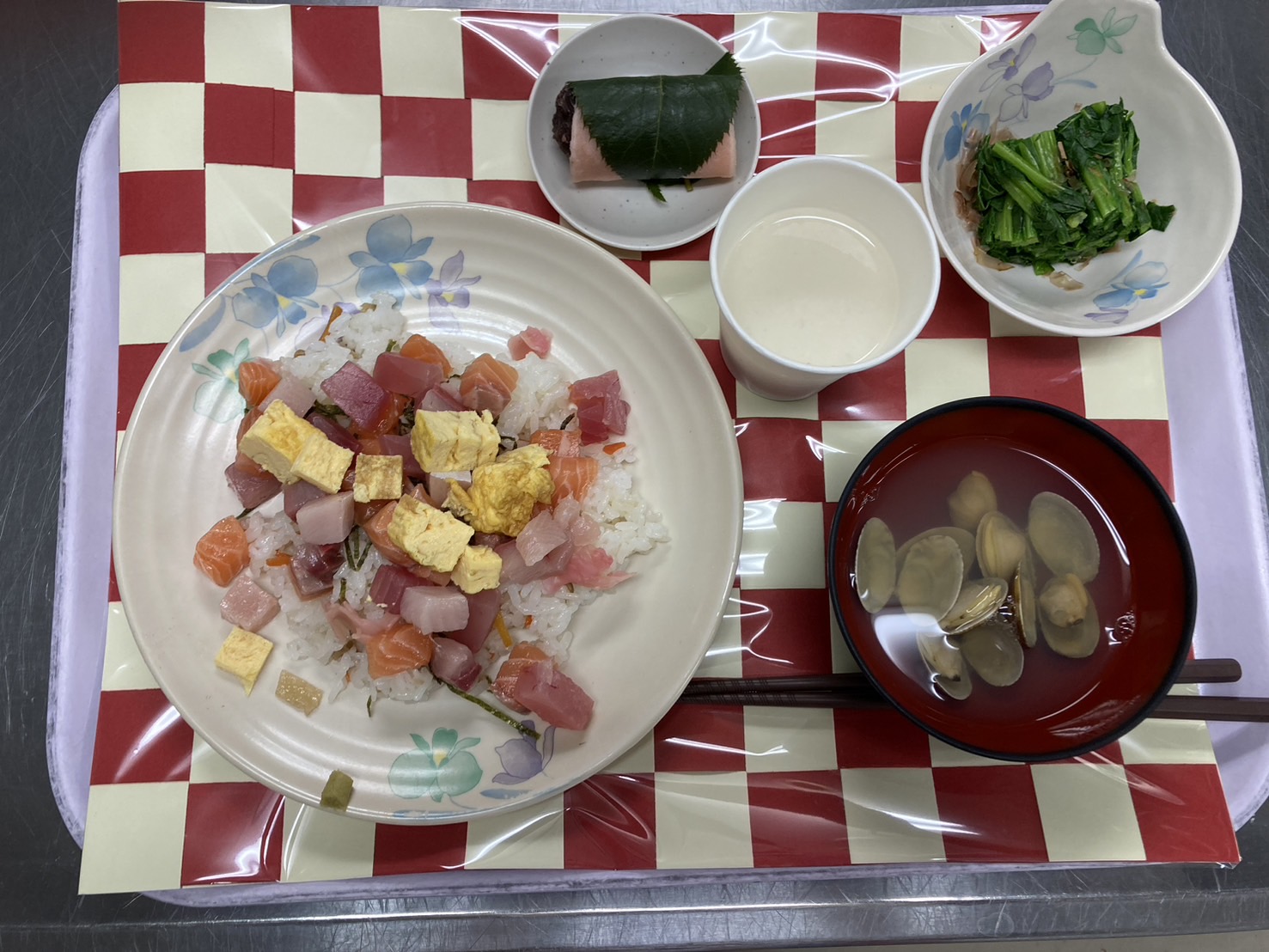 先週の金曜日3/1に少し早めのひな祭りの献立が夕食に出されました。