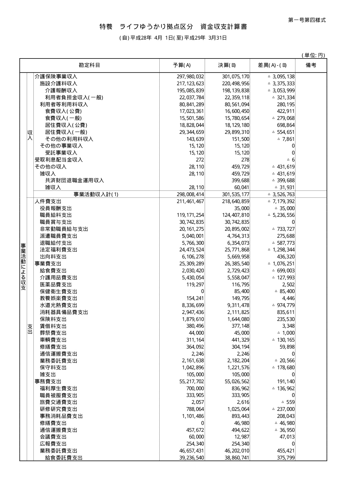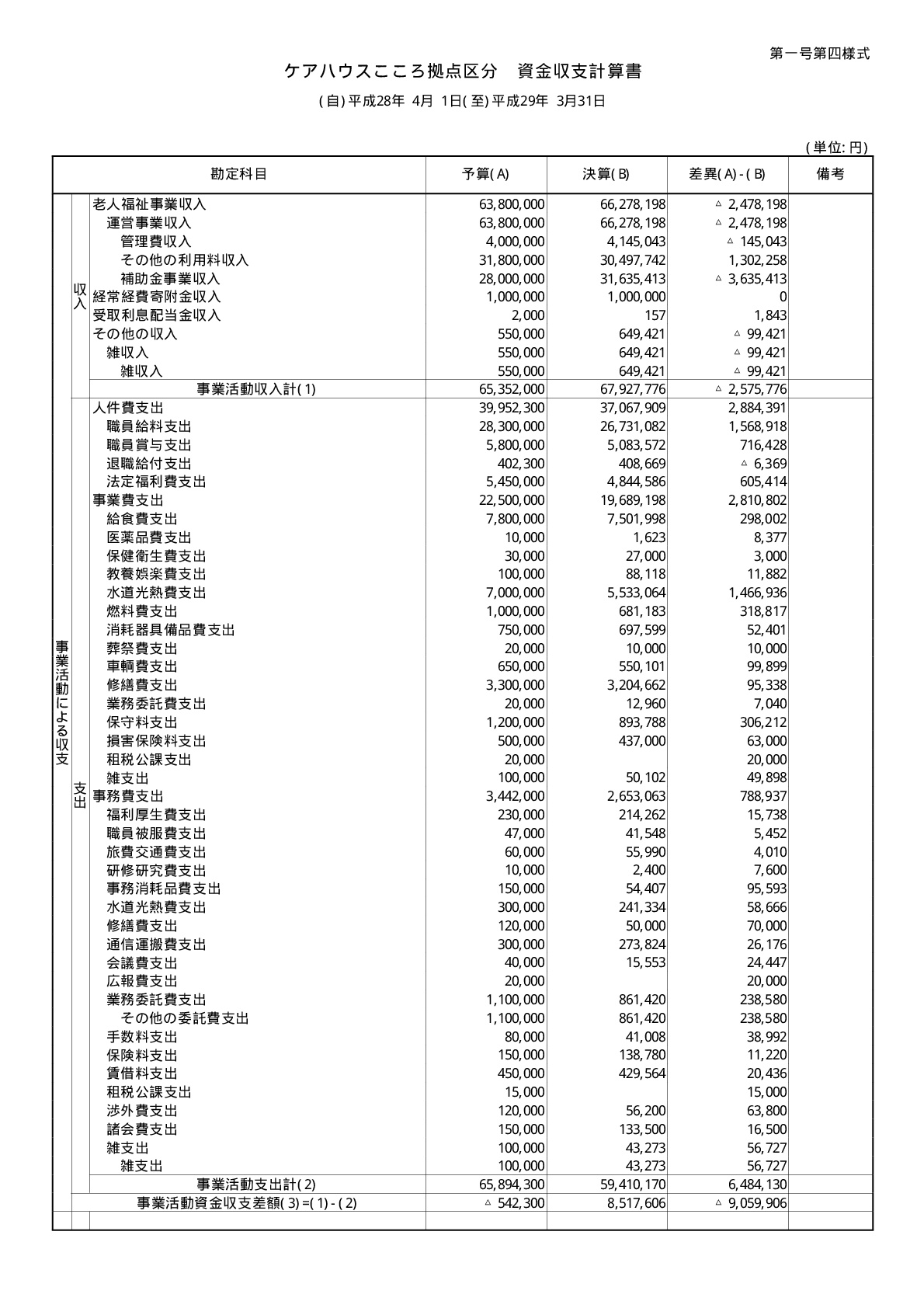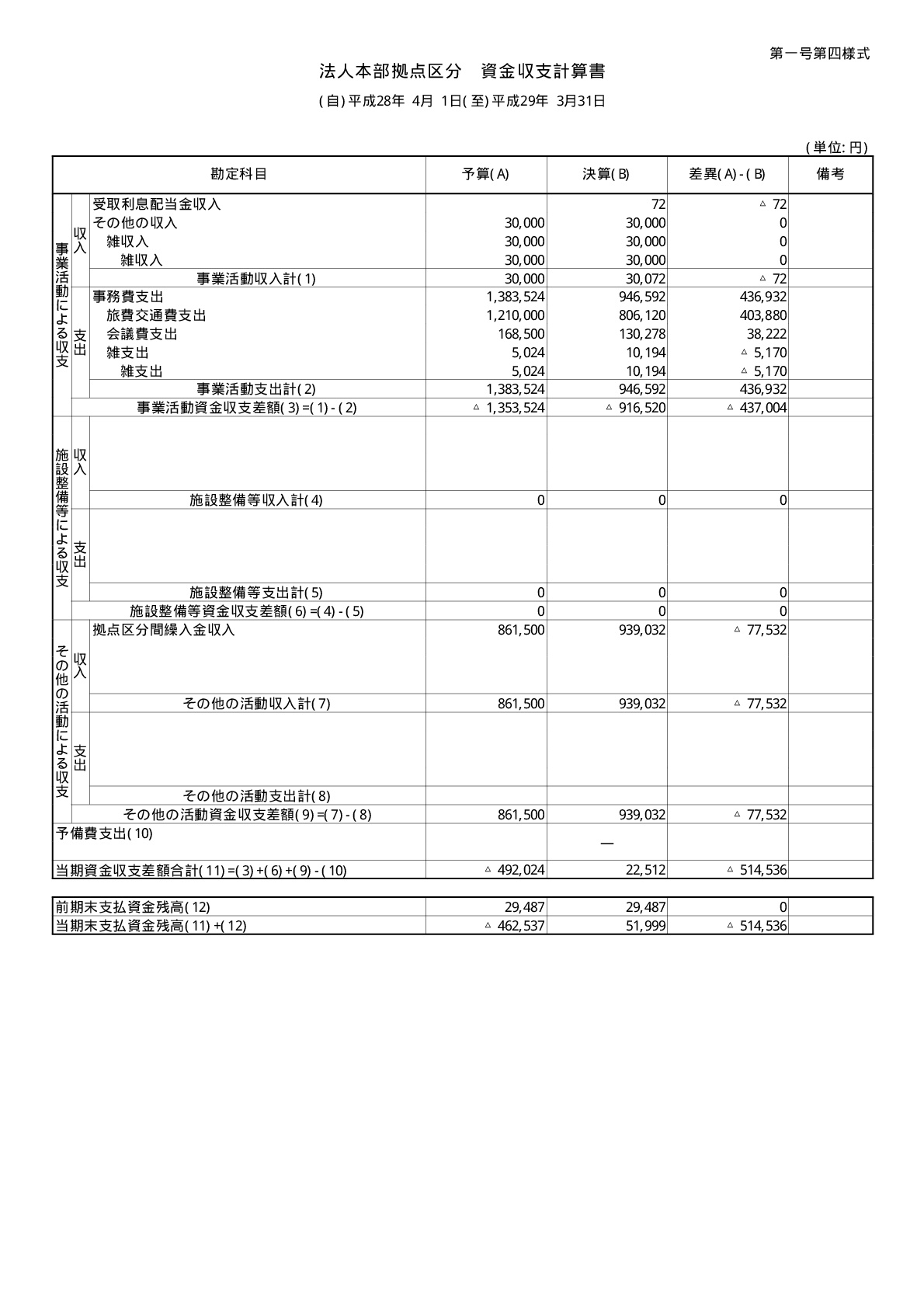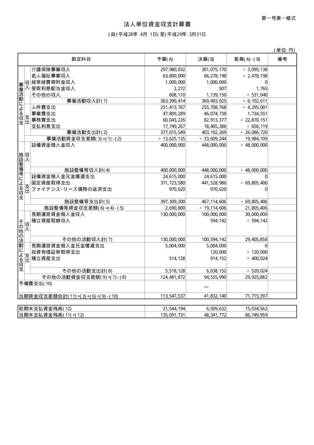計算書類(資金収支計算書、事業活動計算書、貸借対照表)