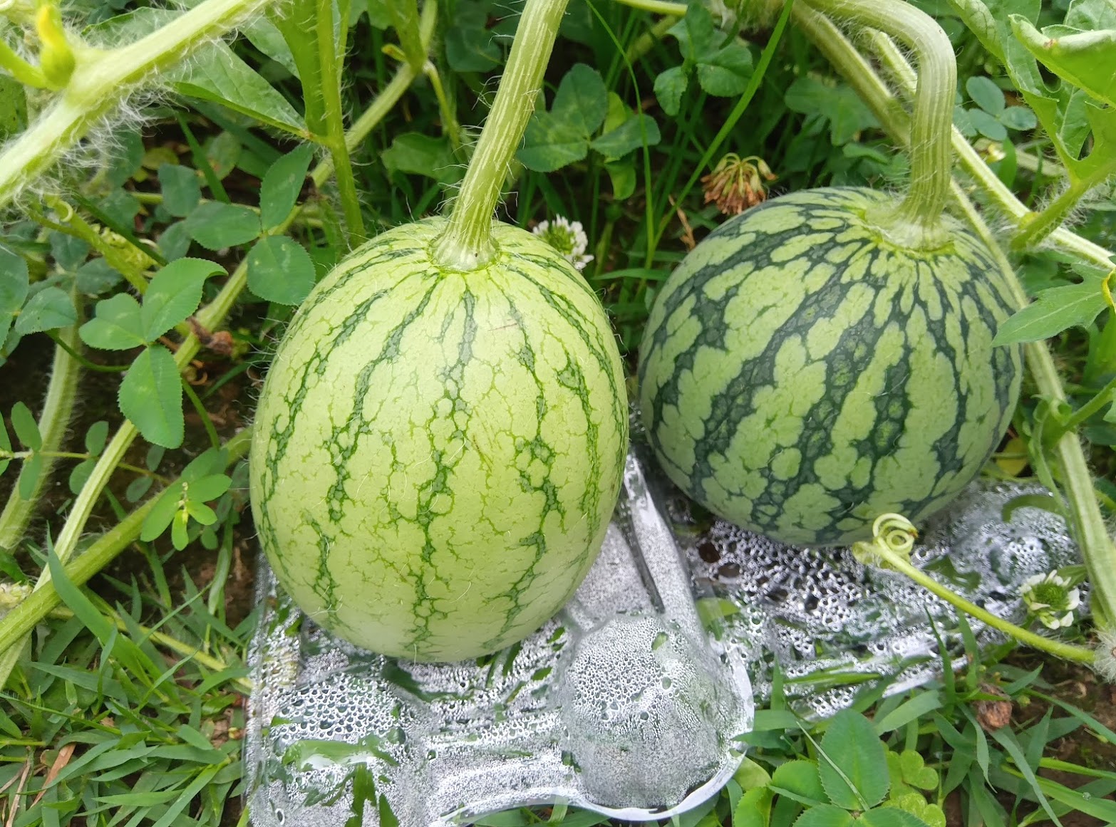 小玉スイカも順調に育っており、実がつきすぎたので間引きの最中です。