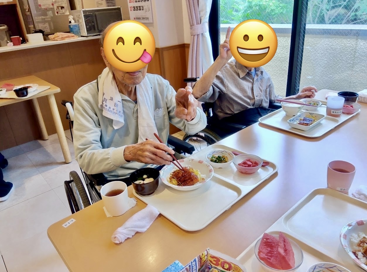 普段から、食事は工夫しており毎月行事食やご当地メニュー等を献立に組み込んでいます。ちなみに7月の行事食は、七夕の日に「流しそうめん」。ご当地メニューは、「上州ソースカツどん」でした。丁度、スイカの収穫の時期で今年は小玉スイカがとりあえず20個収穫できたので、適時デザートに取り入れています。試食してみましたが、思った以上に甘く美味しいスイカでした。