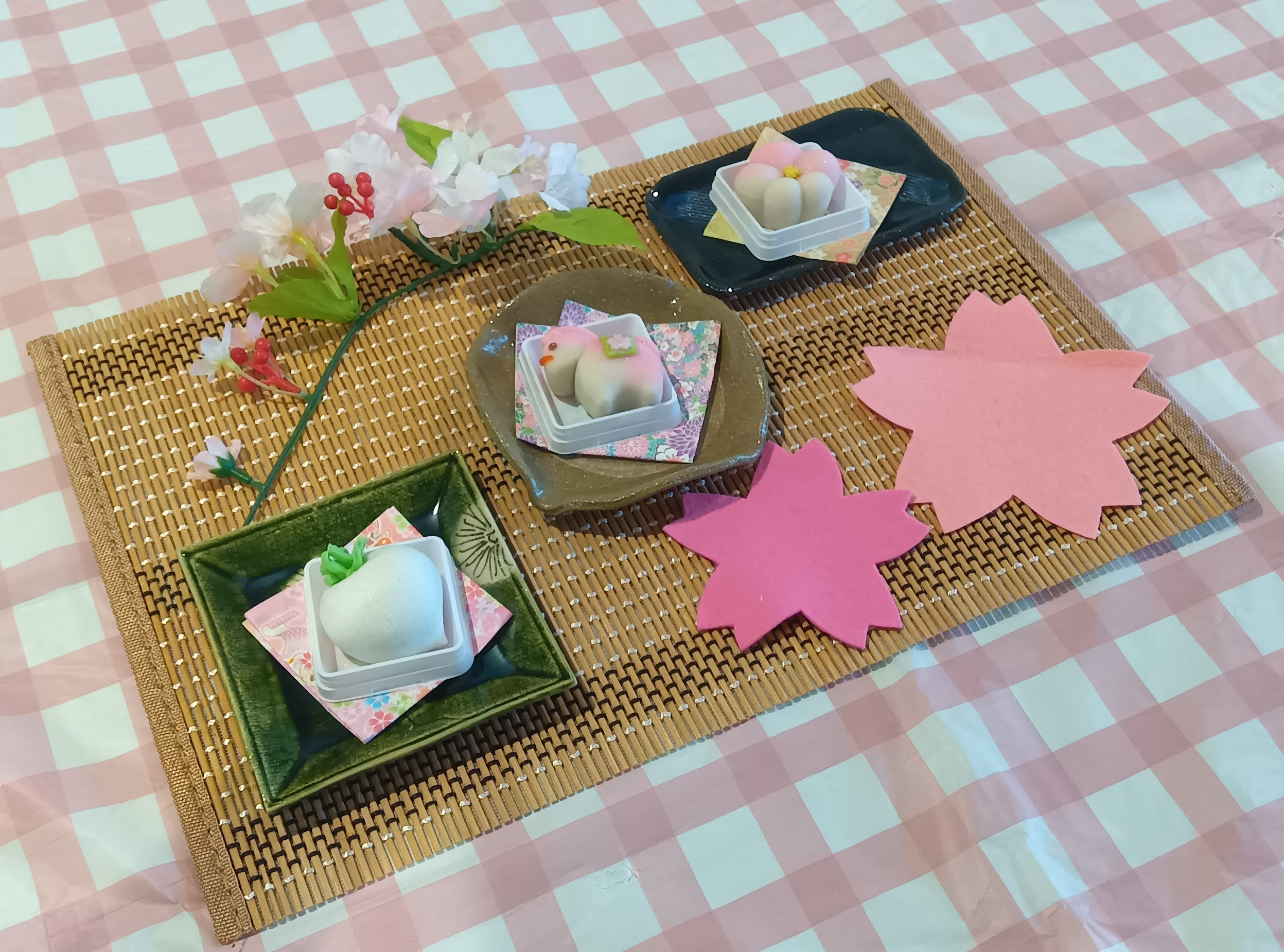 何を実施するか直前まで迷いましたが、美味しいものを食べていただきたいと考え、和菓子と抹茶を楽しむ会としました。鉢の木さんで約10種類の和菓子をご用意いただき、抹茶は事務の女衆がたてます。