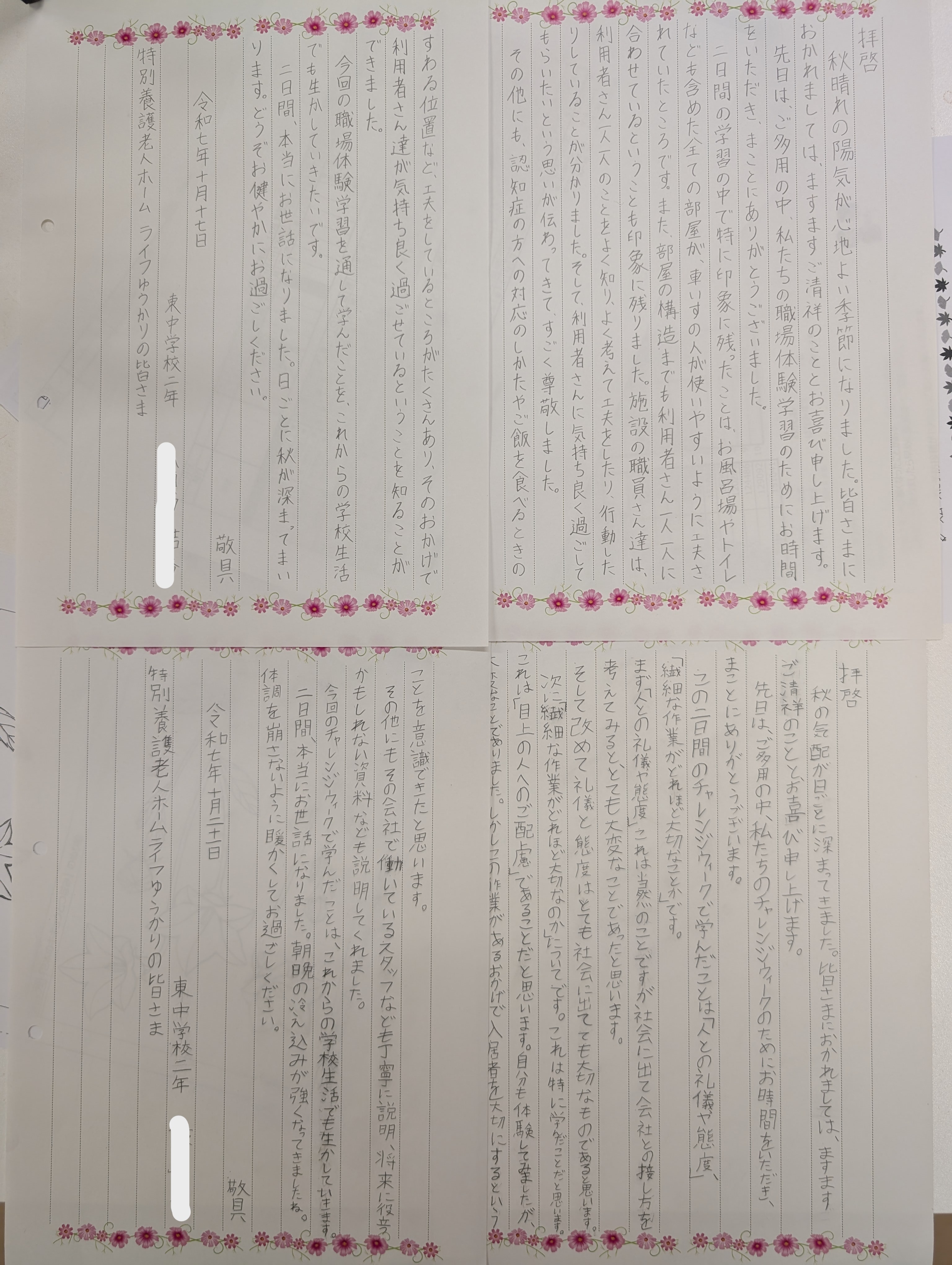 10月27日(月) 藤岡東中学校2年生2名が先日のチャレンジウィーク(職場体験学習)のお礼を届けてくれました。